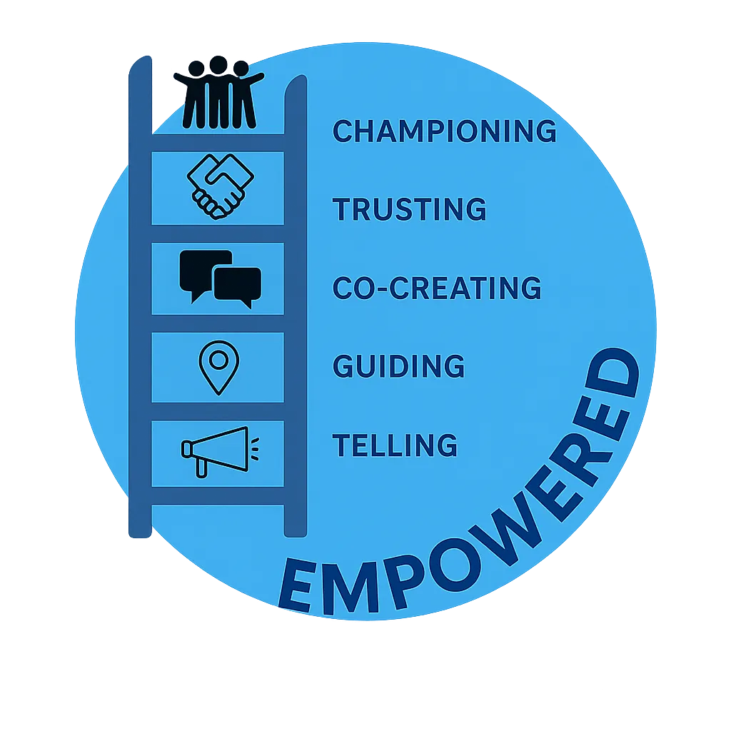 The Empower dimension is about unlocking the potential of others. Leadership is not about control, but about creating the conditions where people can thrive. By fostering trust, granting autonomy, and fueling motivation, leaders empower their teams to bring their best ideas and energy forward. When leaders empower, they build ownership, confidence, and momentum that drives both individual growth and collective success.